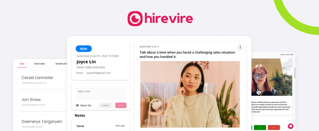 Hirevire is an accessible asynchronous interview tool that enables recruiters to collect responses via video, audio, or text. It’s specifically designed for startups and small teams needing a simple, no-frills platform for screening.
