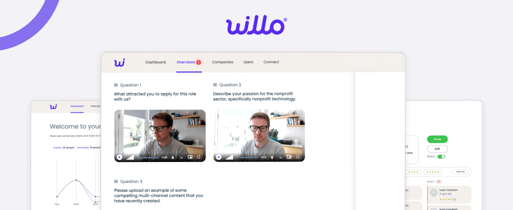 - Custom Branding & Question Sets: Willo allows employers to personalize the interview experience by adding a company logo, intro videos, and question sets tailored to roles and skills.