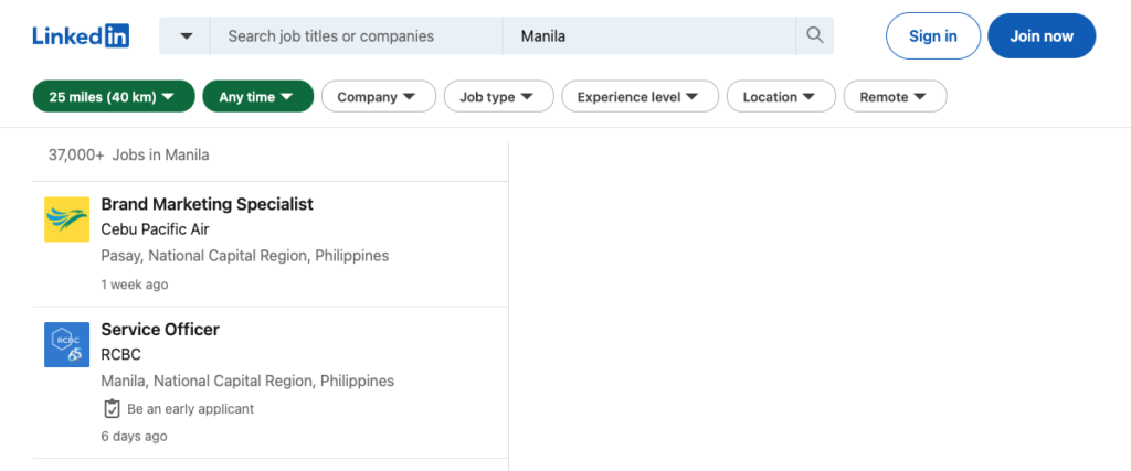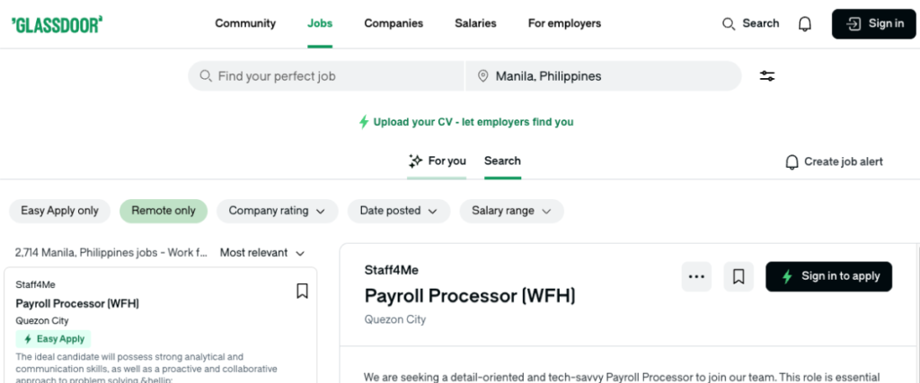 Mainstream job boards like LinkedIn, Bossjob, Indeed, and Kalibrr also list a growing number of remote or hybrid openings – simply filter by “Remote,” “Work From Home,” or “WFH.”