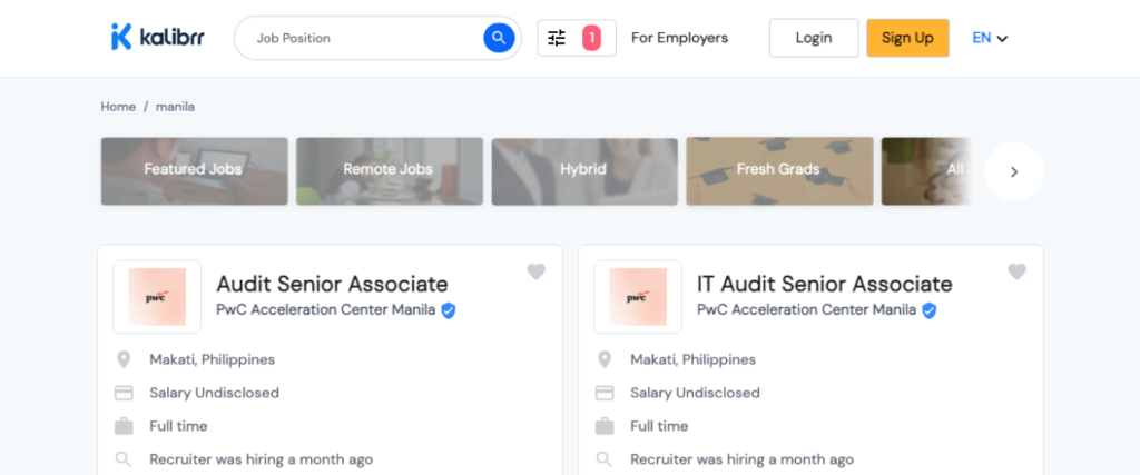 For Recruiters: You get access to an active, high-volume pool of Filipino candidates and a posting system that supports everything from mass hiring to niche role targeting. Job ads also come with detailed filtering options (location, experience level, specialization), and the platform frequently runs hiring fairs and recruitment campaigns that boost visibility.