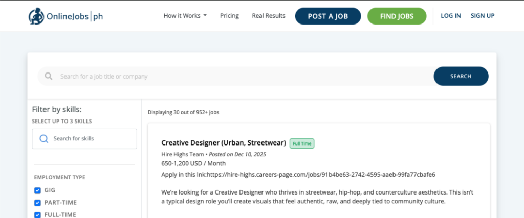 OnlineJobs.ph is a significant hub for Filipino remote talent and has grown into one of the largest virtual workforce marketplaces in Asia. Thousands of foreign employers, especially from the US, Australia, UK, and Canada, use it to hire virtual assistants, creatives, marketers, developers, and operations support staff.