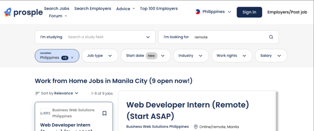 Prosple is the leading platform in the Philippines for internships, fresh graduate programs, and entry-level roles. It often partners with universities to help students prepare for employment and internships. The site includes career guides, employer rankings, and application insights.