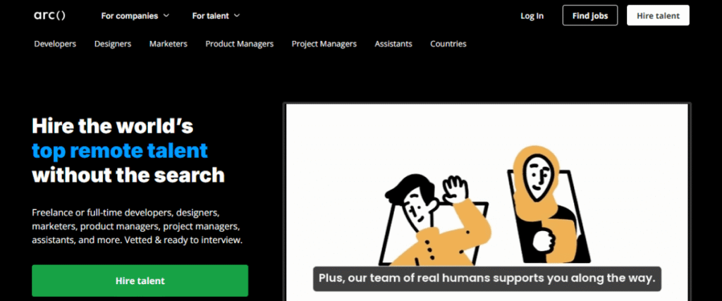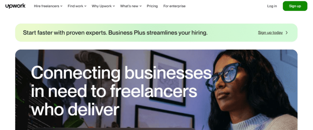 Upwork is one of the largest freelance marketplaces. It’s a massive marketplace where you can find everyone from technical architects to SEO writers. It’s built for project-based work, but many companies use it to “test drive” talent before offering full-time roles.