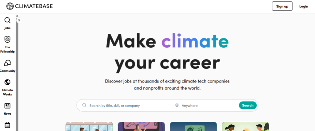 Climatebase is a fast-growing job platform focused entirely on climate action and climate tech. It is the powerhouse of the “Climate Tech” world. It’s where the most innovative clean energy startups and environmental R&D teams list their roles.