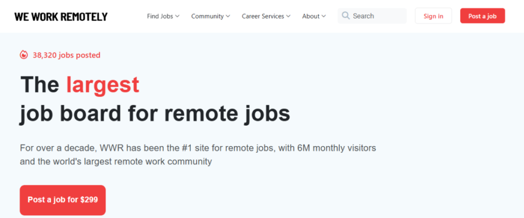 This is a big one. WWR has been around for over a decade and has the world’s largest remote community. With millions of monthly visitors, WWR connects startups, remote-first companies, and distributed teams with top talent.