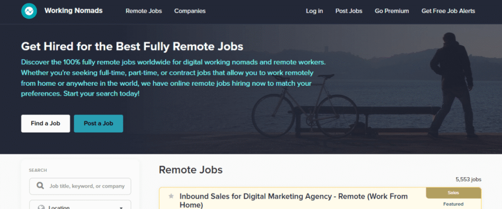 Working Nomads aggregates remote job listings across technology, marketing, operations, and creative roles. This one is a favorite for digital nomads. They use highly targeted email digests to push roles directly to people who prefer an asynchronous lifestyle.