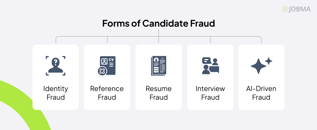 AI-driven misrepresentation occurs when artificial intelligence tools are used during the hiring process in ways that present skills, identity, or qualifications differently from reality. These are harder to detect with traditional methods. Examples include,