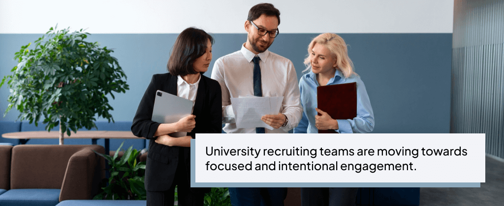 Companies are shifting from broad reach to focused, strategic engagement, with fewer campuses, deeper partnerships, and better ROI tracking, driven by the pandemic and evolving talent needs. This shift is often referred to as the “Great Reset” of campus recruiting.