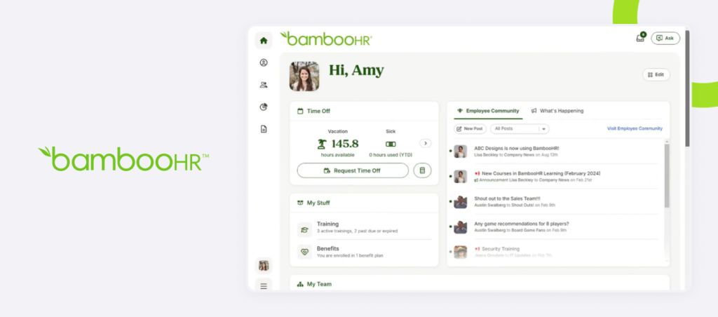 BambooHR is a comprehensive human resources software-as-a-service (HR SaaS) that centralizes all core employee data. It offers tools for onboarding new employees, time-off tracking, and document storage. The platform is great for automating administrative tasks, ensuring compliance, and providing a smooth employee experience.
