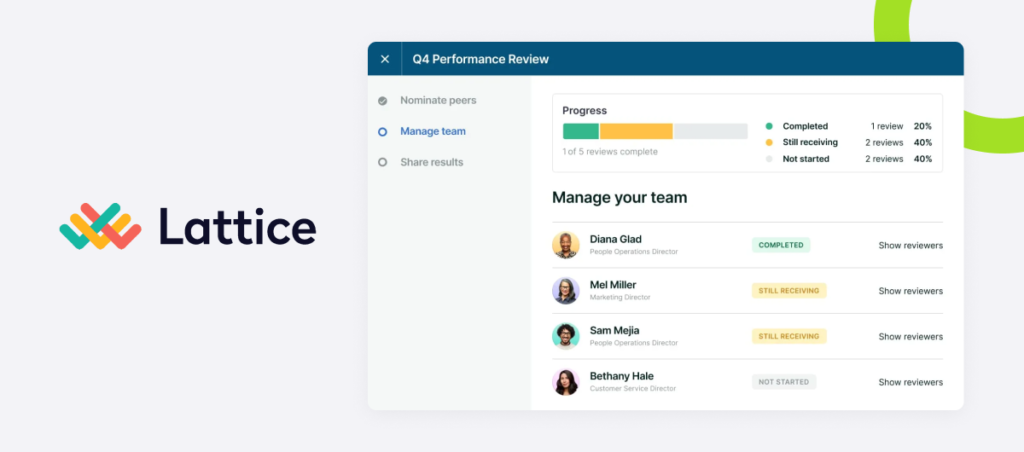 Lattice is a modern performance management platform that moves beyond annual reviews. It facilitates continuous feedback, goal tracking through Objective & Key Results (OKRs), and regular check-ins between managers and employees. Lattice helps businesses increase employee engagement and reduce turnover by integrating a culture of ongoing development.