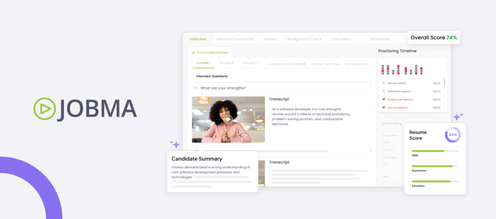 Jobma is an AI-powered video interviewing and hiring software that helps automate scheduling, screening, and interviewing to streamline the recruitment workflow. It offers one-way video, live, written, audio, and coding assessments, AI-driven scoring, smart analytics, and top ATS integrations, all in a single unified platform. This all-in-one platform is essential for enterprises looking to automate their hiring process while staying compliant and future-ready.