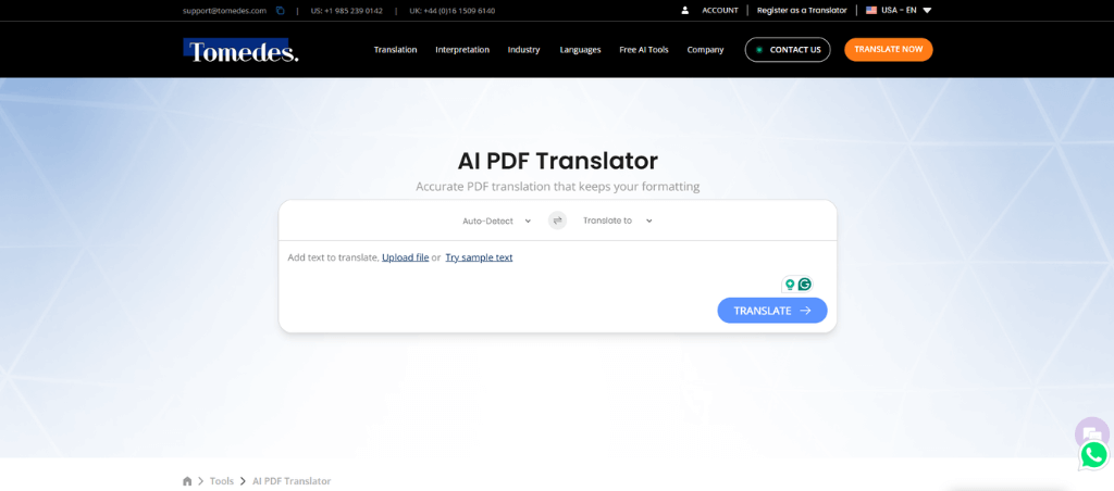 12. Tomedes AI PDF Translator: PDF Translation With Layout Preservation