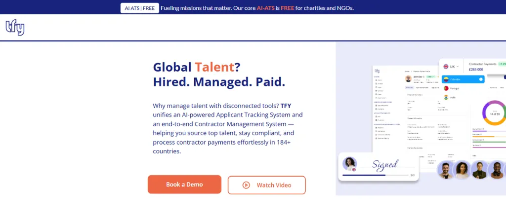 TFY is a global workforce management platform that helps organizations hire, manage, and pay talent through a single, unified system across 184+ countries. Designed for growing and mid-sized businesses, TFY combines an ai-powered ats with an end-to-end contractor management system, eliminating the need for multiple disconnected tools.
