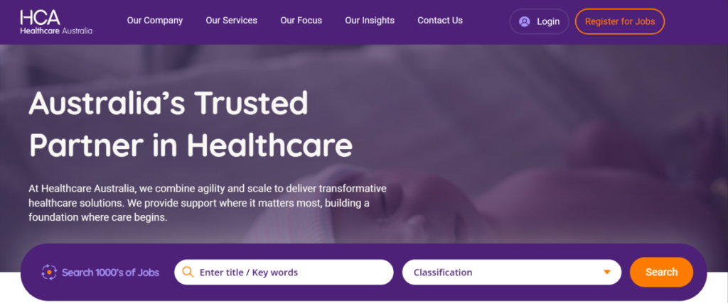 While HCA operates as a massive workforce solution provider (agency), its digital platform serves as a primary job board for the healthcare sector. They also have an eHCA mobile app that allows clinicians to “gig” their way through the healthcare system, picking up shifts in real-time across hospitals, aged care, and disability services with instant compliance tracking.