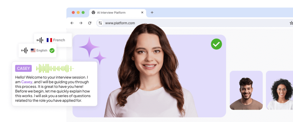 Pre-recorded and agentic AI interviews improve the overall candidate experience by giving individuals greater control over how they present themselves. They can complete their interviews any time within a set time frame instead of logging in at a fixed, scheduled hour. This flexibility gives candidates control over when they participate, whether that is after work, on a weekend, or during a quiet moment in their day.